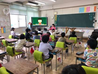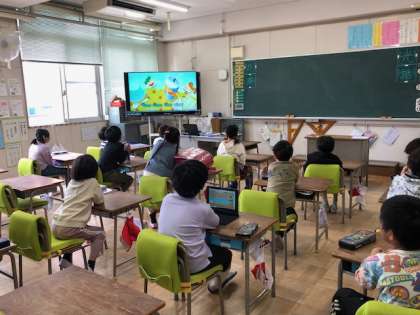 モジュールの動画を見たり歌を聞いたりしながら、聞こえた単語をみんなの前で発表をします。