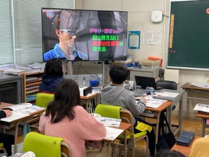 6年生の社会は日本国憲法の誕生と意義について学習します。なかなかイメージをつかむのが難しい憲法ですが、NHKforSchoolの「社会にドキリ」では憲法の考えが取り入れられた身近なものを分かりやすく解説してくれます。しっかりと聞いて学び取っています。ノートもしっかりとまとめられています。