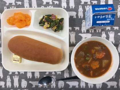 4月18日 本日の給食 公開日 2025/04/18 更新日 2025/04/18 お知らせ 今日の献立は、・コッペパン ・バター ・ビーフシチュー ・ベーコンとさんどまめのソテー ・みかんのかんづめ ・牛乳 です。 いいね(0)