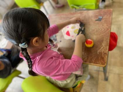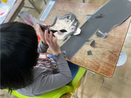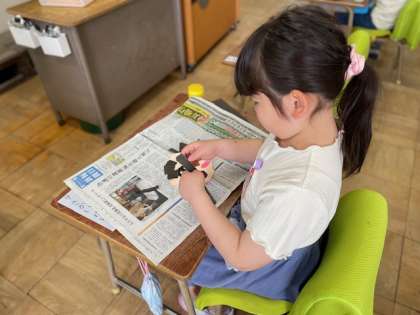 4月24日 1年図画工作 公開日 2025/04/24 更新日 2025/04/24 お知らせ 1年生の図工では自分の顔を作ります。目や鼻、口を描いたら自然と自分の顔に似てくるんですね。みんなかわいくて素敵なお顔です。髪の毛は画用紙をちぎって貼っていきますが、ちぎった感じが髪の毛の感じをよく表せています。完成が楽しみですね! いいね(0)