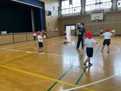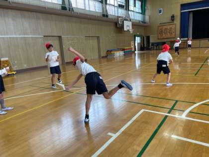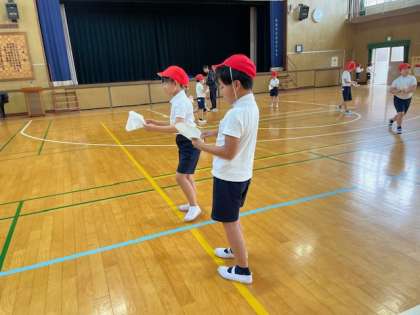 5月に入るとすぐにスポーツテストが行われます。2年生の体育では投げる動きに慣れるために、紙鉄砲を使った運動を行いました。大きく音を鳴らすためには体全体を使って大きく腕をふる必要があります。楽しみながら体をいっぱいに動かして汗だくになりました。