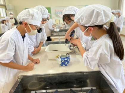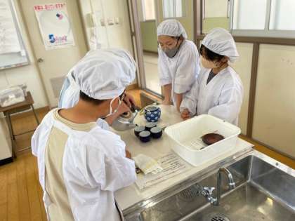 5月7日 5年家庭科 公開日 2025/05/07 更新日 2025/05/07 お知らせ いよいよ5年生は家庭科で調理実習がスタートです。まずはコンロの使い方を学習し、お茶を入れました。最近はやかんでお湯を沸かし、急須で湯呑みに注ぐという体験も減ってきました。(写真は一旦湯呑みを温めている時も含まれています)子どもたちが楽しみにしている調理実習、次は何を作るのかな? いいね(0)