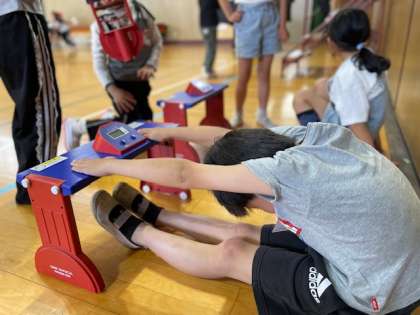先週から休み時間に体力向上のための様々な取り組みがスタートしています。今週は長座体前屈や握力を測定できる機械が登場し、昼休みにたくさんの人たちが参加しました。来週はスポーツテスト!みんな、どんどん体を動かしましょう!