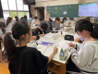 6年生の理科では唾液を使ってでん粉の性質を変化させる実験をしました。ものを食べたあと、体の中にどのように取り入れられているのでしょうか。グループごとにでん粉を入れた試験管に唾液を混ぜる実験を行うと、でん粉の性質が変化しました。消化の仕組みの第一歩が、この唾液です。これから食べ物の消化の道のりを探っていきましょう!
