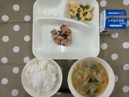 5月15日 本日の給食 公開日 2025/05/15 更新日 2025/05/15 お知らせ 今日の献立は、・ご飯 ・鮭の味噌焼き ・五目汁 ・えんどう(グリーンピース)の卵とじ ・牛乳 です。 いいね(0)