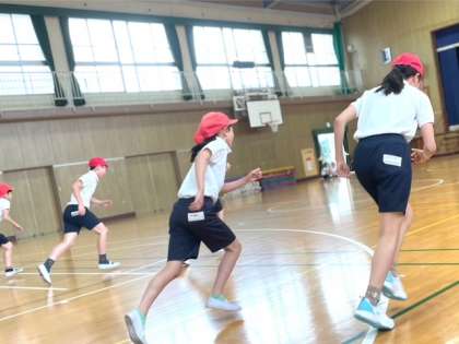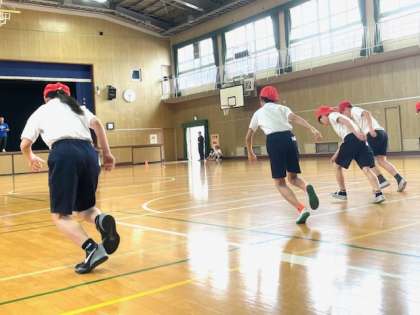 5年生の体育は20mシャトルランです。高学年になると最初のペースは抑えて制限時間いっぱい使うなど、ペース配分を考えて走るようになります。少しずつペースを上げて、最後は「あと一本!」と気持ちを込めて走り抜いていました。息を切らせて汗だくになりながらも、「去年の自分の記録から伸びた〜!」と嬉しそうにしていました。友だちの頑張る姿をじっと見て応援している姿も素敵でした。