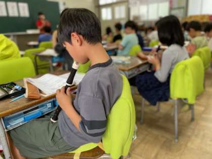 5月16日 3年音楽 公開日 2025/05/16 更新日 2025/05/16 お知らせ 3年生の音楽はリコーダーの練習です。ソとラとシの指づかいをしっかりと確認して、音を奏でていました。タンギング(トゥーという声を出すような感じで吹く)がしっかりできていると、芯のあるしっかりとした音が出ます。 繰り返し練習していく中で、どんどん上達していきました。 いいね(0)