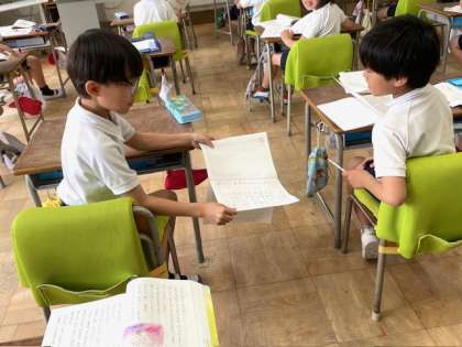 2年生の国語では「名前を見てちょうだい」の感想を書きました。じっくりと考えて面白いところや不思議なところをたくさん書きました。中には感想を5ページにわたって書けた人も!しっかりと自分の言葉で表現できているのが素晴らしいですね。