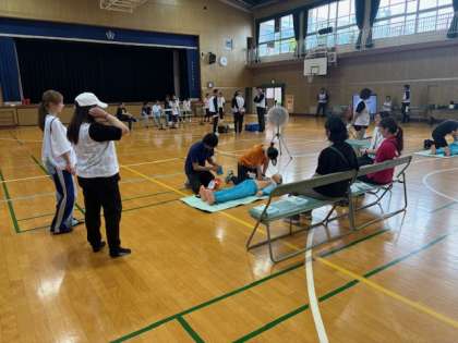 午後2時より、大阪災害ボランティアの方にご協力いただき、救命救急講習会を開催しました。教職員、PTA、学校体育施設開放の方々が参加しました。