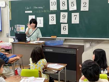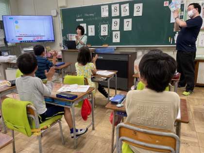 3年生は外国語活動の時間に、「1〜10までの数字を英語で言ってみよう」というめあてで学習を行いました。授業では、黒板に貼られた数字のカードや先生の発音を聞きながら、「One, two, three♪」とリズムにのって歌いながら数字を覚えていきました。途中からは「three」のタイミングで手をたたくなど、体を使った活動も取り入れ、子どもたちは笑顔で楽しみながら学んでいました。英語の音やリズムに親しみながら、自然と数字の言い方を身につけていく姿が見られました。これからも、歌やゲームを通して、英語に親しむ気持ちを大切にしていきたいと思います。