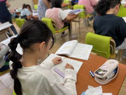 4年生は、これまで学習してきたわり算のまとめとして、練習問題に取り組みました。文章題や3けた÷1けたのわり算など、さまざまな問題にチャレンジしながら、これまでの学びをふり返りました。授業の中では、友だちと考え方を伝え合ったり、「どうやって解いたの?」と質問し合ったりする姿も見られました。自分の考えを言葉で説明することで、理解がより深まっていく様子がうかがえました。難しい問題にもあきらめずに取り組む姿勢が育ってきており、学び合いの力が高まっていることを感じます。これからも、仲間とともに学びを深めながら、算数の力をしっかりと身につけていってほしいと思います。