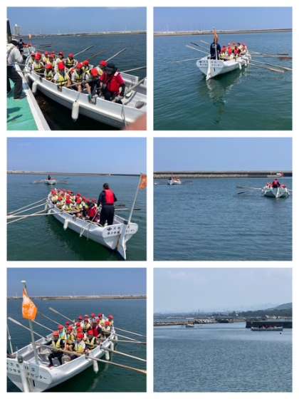 2艇に分かれて乗船し、ソーレ、1、2の掛け声に合わせて櫂を漕ぎました。