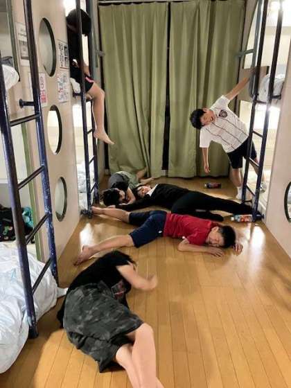 夜レクの後お風呂に入り、就寝の準備をしました。班長会で今日一日を振り返って、明日に備えました。