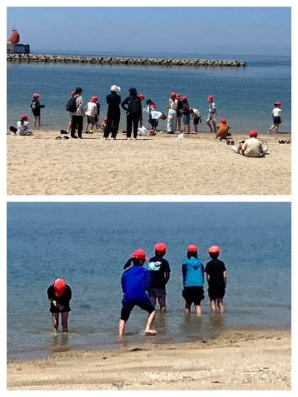 6月5日 5年自然体験学習 公開日 2025/06/05 更新日 2025/06/05 お知らせ バスに乗るまでの1時間程、海洋センター横の砂浜で自由に過ごしています。 貝拾いや砂遊び、ボール遊び、生き物探しなど思い思いのことをして、最後のひとときを海辺で過ごしました。 この後、2時45分にバスに乗り、4時ごろに学校に戻る予定です。 いいね(0)