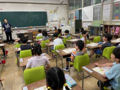 楽しみにしていた万博への遠足は、あいにくの雨で中止になってしまいました。 それでも1年生の子どもたちは気持ちを切り替え、道徳の授業にとても真剣に取り組んでいました。 その姿に、 先生たちも感心しました。