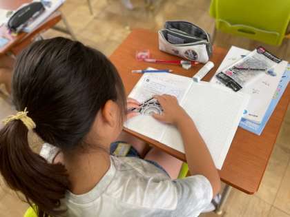 この学習では、一人ひとりが自分の手で三角定規を動かし、角度を測ったり予想したりする作業が中心となります。 「この角度は何度かな?」 「組み合わせを変えるとどうなるんだろう?」と、 友だちと相談したり、 自分で考えたりしながら、 積極的に取り組む姿が見られました。