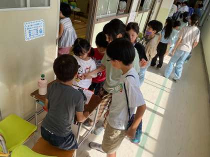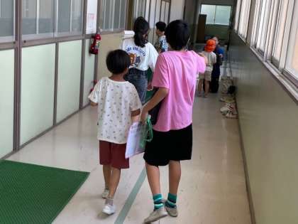 お店を回っているチームも、説明をしっかり聞きながら、工夫されたゲームや出し物を楽しんでいます。高学年の児童は、低学年の子どもたちを優しくリードし、困っている様子があればすぐに声をかけてサポートする姿が見られました。