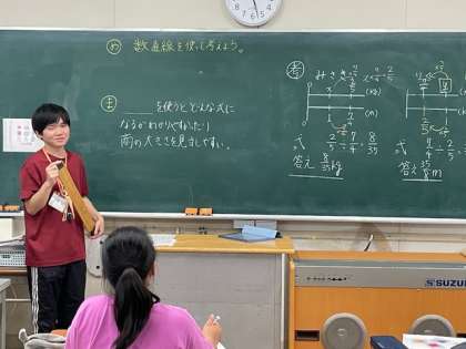 児童たちは、数直線をノートに丁寧に描きながら、自分の考えを言葉にして説明する姿が見られました。友だち同士で考えを共有し合うことで、学びが広がり、算数の楽しさを感じる時間となりました。