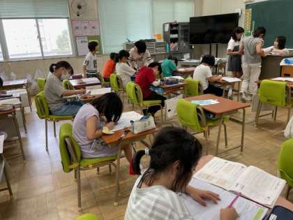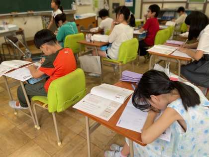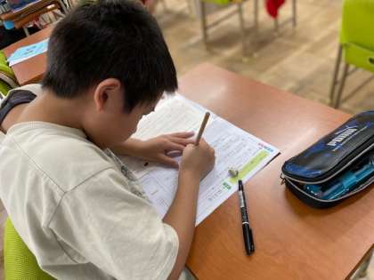 また、字と字の間隔を均等に保つことにも注意を払い、バランスの取れた文章を書くことを目指して取り組んでいます。先生のアドバイスを受けながら、何度も書き直す姿からは、「もっと上手になりたい」という気持ちが伝わってきました。