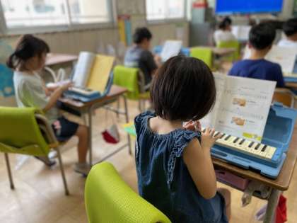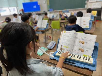 2年生の音楽では、鍵盤ハーモニカを使って「かっこう」の演奏練習を行いました。 子どもたちは、楽譜を見ながら一音ずつ丁寧に音を確かめ、集中して取り組んでいました。
