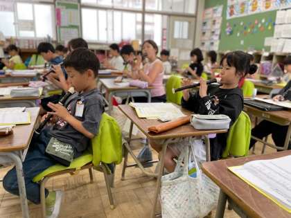 一人ひとりが集中して音を確かめながら、友だちと音を合わせる楽しさも感じている様子でした。これからも、さまざまな曲に挑戦しながら、リコーダーの学習を楽しんでいきます。