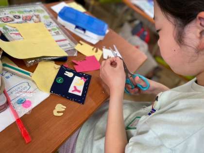子どもたちは、フェルトを使って小物を作り、そこに自分の名前を貼り付けることで、個性あふれる作品に仕上げました。針と糸を使う作業に最初は緊張していた様子もありましたが、回数を重ねるごとに手つきも慣れ、丁寧に縫い進める姿が見られました。