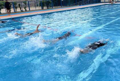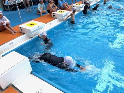 練習の最後には、みんなが楽しみにしていたリレーを実施! チームごとに声をかけ合いながら、バトン代わりのタッチをつなぎ、プールの中は大盛り上がり。 泳げる子も、歩いてつなぐ子も、みんなが一生懸命に参加し、笑顔いっぱいの時間となりました。
