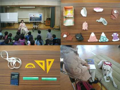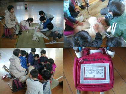 2月16日(火)の2〜3時間目、ゲストティーチャーをお招きして、3年生が盲導犬とふれあう体験学習を行いました。2時間目はゲストティーチャーのふだんの生活の様子をビデオで見せていただいたり、盲導犬をはじめとする介助犬についてのお話をしていただいたりしました。3時間目は体育館で盲導犬とふれあったり、卓球を体験したり、グッズを見せていただいたりしました。また、子どもたちの質問にも親切に答えていただきました。おかげさまで、子どもたちにとって、たいへん貴重な体験学習となりました。本当にありがとうございました。この場をお借りして厚くお礼申しあげます。