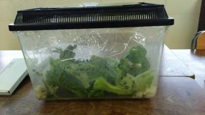 3年生の理科でもんしろちょうの成長について学ぶ単元があります。卵を産ませるための学校の畑のキャベツには、たくさんの卵がついていたそうです。それを各班に分けてひとりひとりが見やすいように分けてくれています。