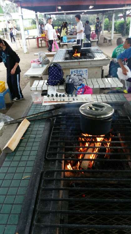 飯盒炊飯でカレーを作っています。今から食べます。おいしいかな?