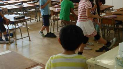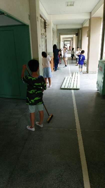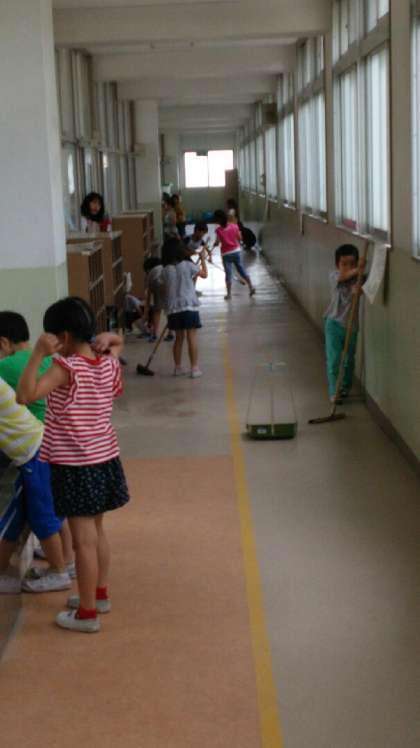 清掃タイムは、教室や廊下、階段、特別教室等を分担して清掃します。