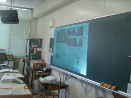 3年生の社会では、プロジェクターで教科書を拡大して提示しています。