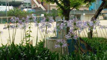 今年もアガパンサスの花がきれいに咲いています。来校の折にはご覧ください。