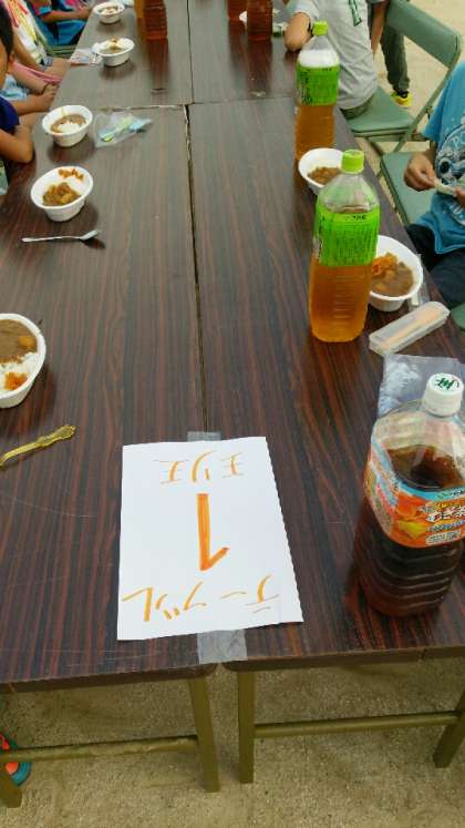 ホッケーの後は、プールに入りました。その後、テントを組み立てゲームをしました。今は、夕食のカレーを食べています。
