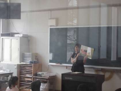 2学期最初の読みきかせが、1・2年生の教室で行われました。