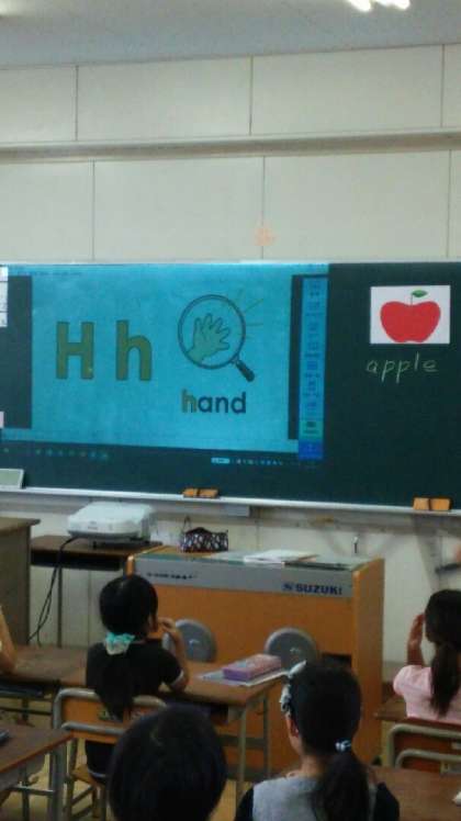 今週から1・3・5年生が水曜日に、2・4・6年生が金曜日に、朝の15分の時間に英語の学習を始めます。
