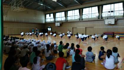 今朝の児童集会では、応援の練習をしました。1拍子、2拍子等の掛け声や手拍子を応援団にあわせてしっかりできました。応援団の子ども達も姿勢もよく、メリハリのついた動きができていて、見事でした。