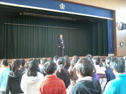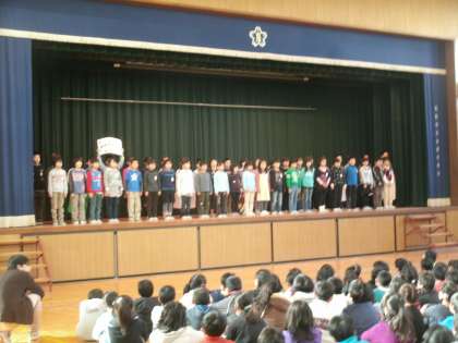 12月25日(水)、2学期の終業式を行いました。1学期同様、本校の伝統である6年生の手話による全校児童での校歌斉唱、3年生全児童による「2学期をふり返って」の発表、校長先生のお話、冬休みのくらしについてのお話がありました。終業式後は各教室での学級活動、地域子ども会ごとに分かれての集団下校をしました。