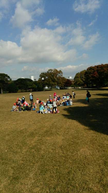 お弁当タイムです。ひなたで食べて、ちょうどいい加減です。