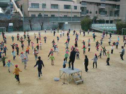 1月15日(水)から1月27日(月)にかけて、15分休みを中心に「なわとび集会」を実施しました。まずは、準備運動の後、校長先生のご指導を受けたり、体育委員会の6年生の手本をまねたりしながら、とび方の練習をしました。その後、音楽に合わせて『金塚なわとび体操』を行ったのですが、子どもたちは寒さに負けず、『金塚なわとび体操』に熱心に取り組んでいました。なわとび週間の後半には、5・6年生の代表によるとび方紹介もあり、模範演技をした子どもたちのすばらしいとび方は、全校の子どもたちの良い手本となりました。また、15分休み以外の休み時間には、進んでなわとび運動に取り組む子どもたちの姿も見られ、とても微笑ましく感じられました。なわとび集会をきっかけに、「なわとびを通して、体力づくりを進める」とともに「運動することの楽しさや喜びを感じ、すすんで運動に取り組む子ども」たちが育っていくことを願っています。