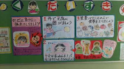 今朝はこの冬一番の寒さでした。インフルエンザも流行し、本校でも5年生1クラスが学級休業になりました。阿倍野区では、明日から学級休業を実施する学校が他にもあります。給食・食育でも風邪の予防に関しての掲示をしています。