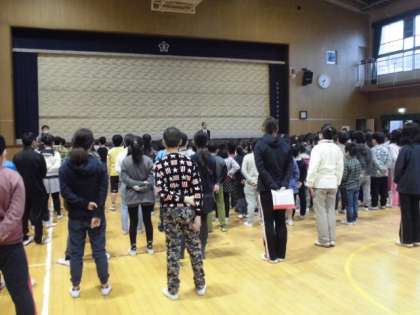 児童朝会では、先週まで行っていたマナーアップウィークについてのお話がありました。また、今週から始まるやさしさウィークについてのお話もありました。
