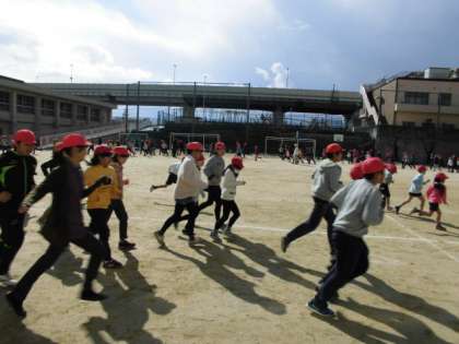 かけ足集会最終日です。始まる前は寒そうにしていた子どもたちも、走り終わるころには、トレーナーを脱いだり、服の袖を上げたりする姿が見られました。子どもたちは本当に元気です。