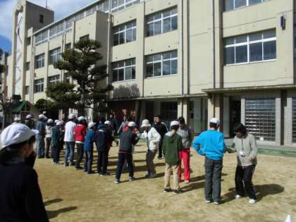 「6年生と遊ぼう週間」の最終日である今日は、教職員との大将じゃんけんです。どちらも真剣にじゃんけんをして、大いに盛り上がりました。