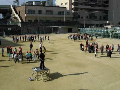 今年最後の児童集会です。わくわくグループでのころがしドッジです。1年間の活動を通して、どの学年の人とも協力しながら、楽しく活動できるようになりました。
