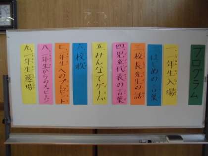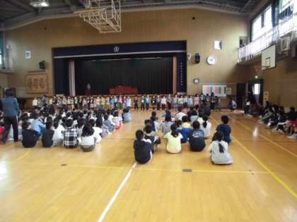 1年生の入学を祝う会が行われました。みんなでじゃんけん列車をしたり、6年生からのプレゼントがあったりとみんなでとても楽しい時間を過ごすことができました。