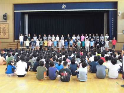 5月18日(木) 公開日 2017/05/18 更新日 2017/05/18 お知らせ 児童集会では6年生の発表が行われました。 早口言葉にリズムあそび、合唱が行われました。 1〜5年生の子どもたちはとても熱心に見ていました。 いいね(0)
