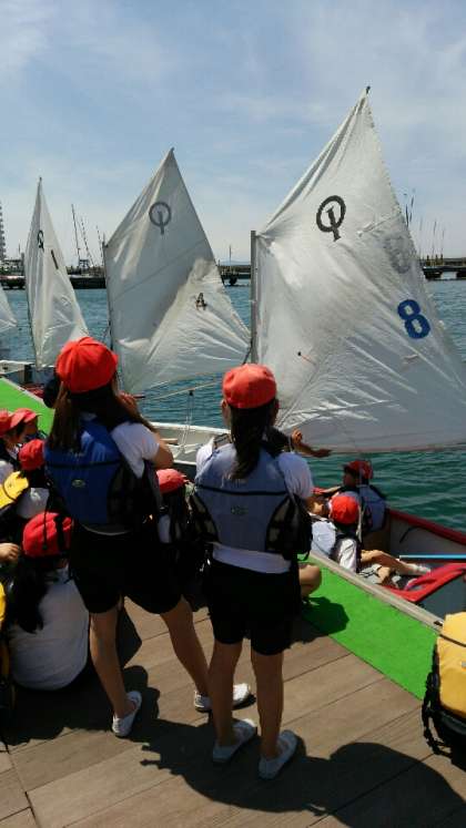 ヨットに乗っています。風がちょうどよく、快調に進み気持ちよさそうです。