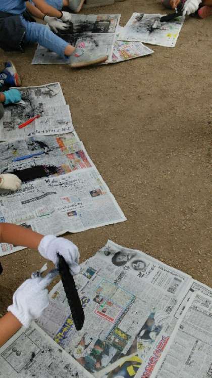 閉所式を終え、焼き板をみがく活動をしています。こちらでの活動もあとわずかになりました。