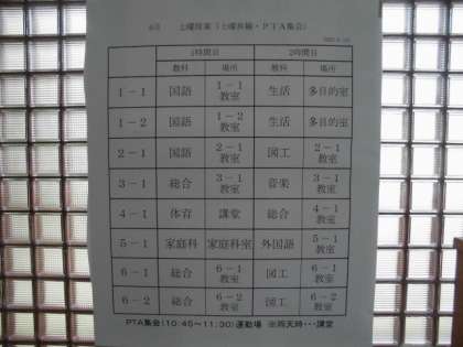 1・2時間目は学習参観。3時間目はPTA集会で親子ドッジボールを行います。